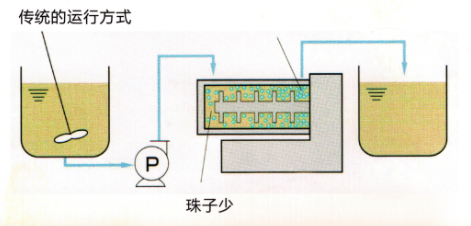 傳統(tǒng)磨機(jī)的運(yùn)行方式 1、粒度難以控制,分散不充分; 2、粒度分布往往較寬; 3、無(wú)法控制物料的溫度; 4、在大流量高速運(yùn)轉(zhuǎn)時(shí),磨介易聚集在腔體一側(cè),容易堵塞在出料口。 |